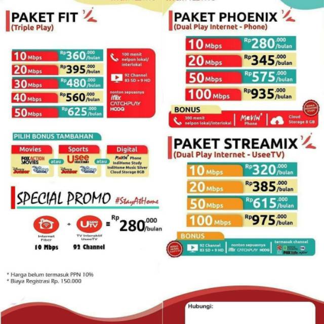 List daftar harga paket indihome 2020.
